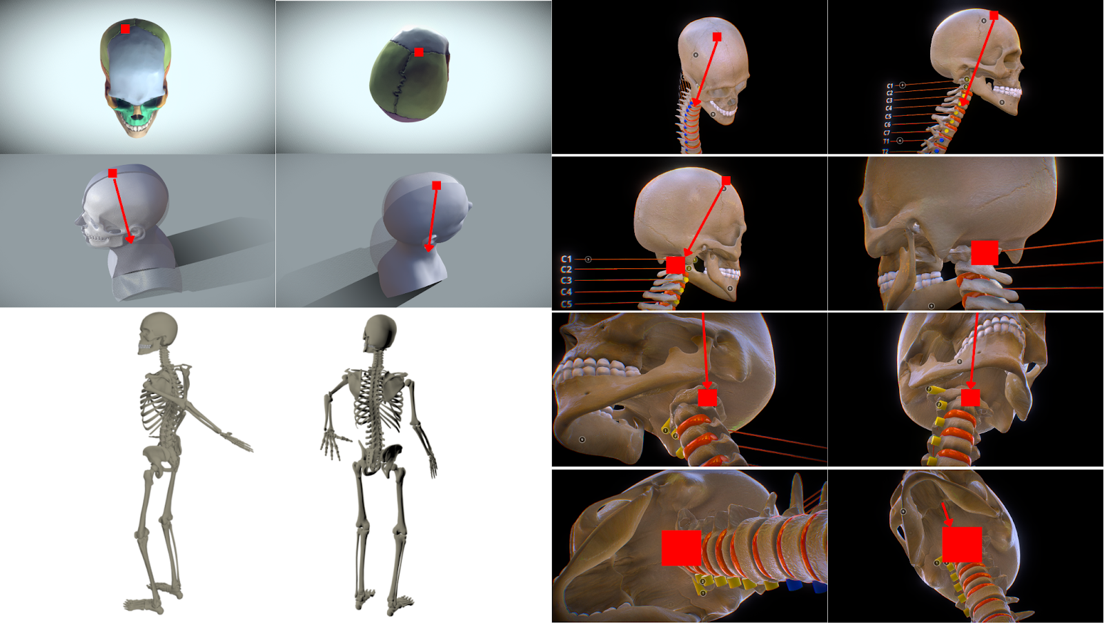 كسر قاعدة الجمجمة، مع سحق وانفصال الفقرتين الرقبيتين الأولى والثانية، هو السبب المباشر للوفاة الفورية. هذا النمط من الإصابات لا ينتج إلا عن صدمة محورية شديدة العنف، نازلة من الأعلى إلى الأسفل، بطاقة تنزل عموديًا من قمة الجمجمة حتى الرقبة. السيناريوهات المحتملة محدودة جدًا: