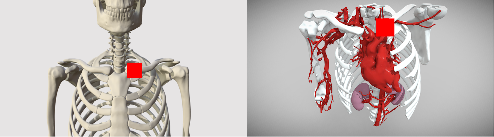 موضع الكسر في الترقوة اليسرى كما ظهر في تقرير التشريح: جزء من العظم بطول يقارب 2 سنتيمتر كان مفقودًا، وكانت الترقوة مفصولة تمامًا عن مفصلها المعروف باسم المفصل القصّي الترقوي، بخلاف الترقوة اليمنى التي بقيت سليمة. ضربة في هذا الموضع يمكن أن تؤدي إلى نزيف داخلي حادّ، خصوصًا إذا تسببت في تمزق الشريان تحت الترقوة أو الوريد العضدي الرأسي، وكلاهما يمرّ على مقربة شديدة من موقع الإصابة.