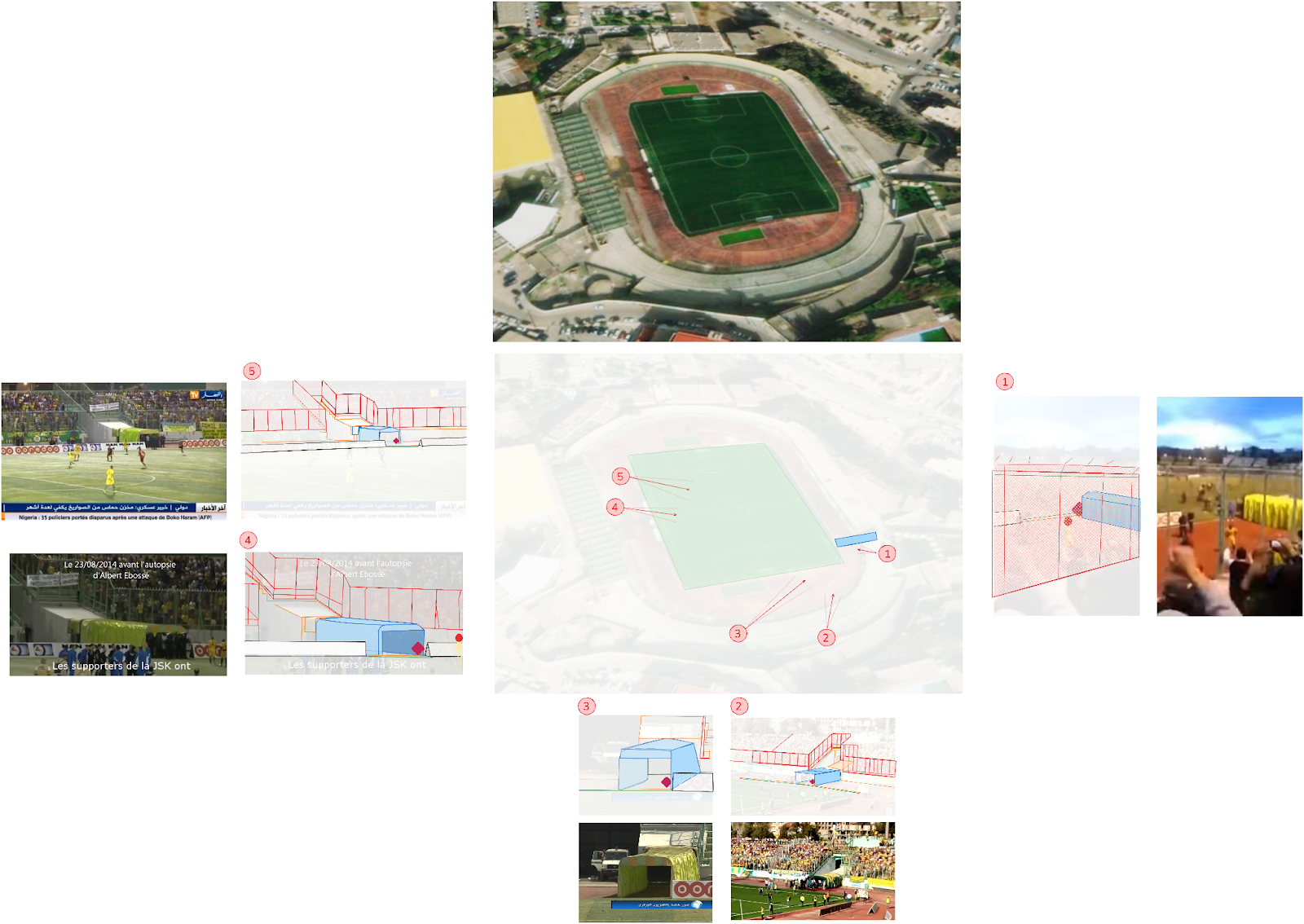 شهود عيان: لاعبا شبيبة القبائل جغرة مفتاح (رقم 15) ونبيل مزاري (رقم 25) يظهران بوضوح عند مدخل النفق، يراقبان إيبوسي وهو ممدد على الأرض، ميتا، بلا حراك.